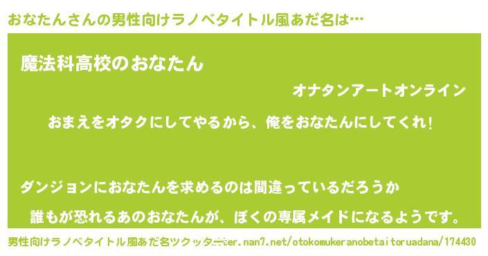 | 胡散臭い通販商品みたいなあだ名 | 『100人中100人が認めたマグネット磁石…その名も「おなたん」』 |