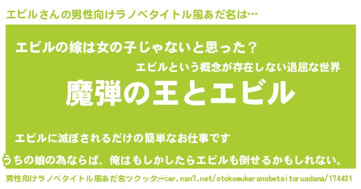 | 意味不明あだ名 | 『住所不定無職エビル(74歳)』『自称エビル』 |