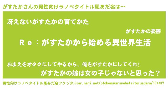 | 女子向けラノベタイトル風あだ名 | 『闇のがすたか』『がすたか様がみてる』 |