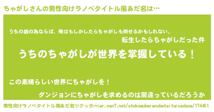 | 女子向けラノベタイトル風あだ名 | 『男装ちゃがしの憂鬱な任務』 |