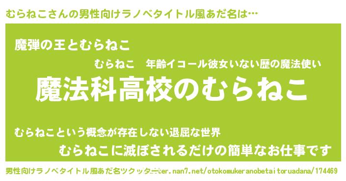 | 女子向けラノベタイトル風あだ名 | 『むらねこなんてお断りですっ。』 |