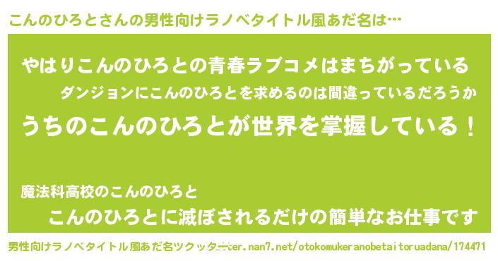 | 女子向けラノベタイトル風あだ名 | 『男装こんのひろとの憂鬱な任務』 |