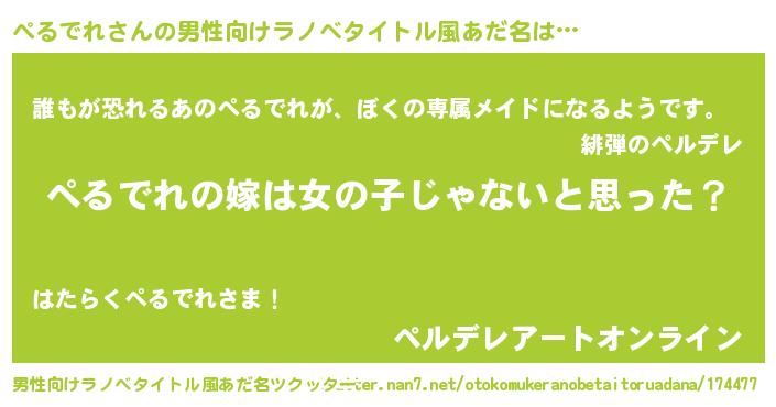 | 女子向けラノベタイトル風あだ名 | 『ぺるでれ様がみてる』 |
