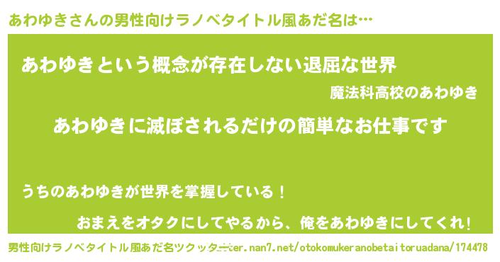 | 意味不明あだ名 | 『永久保存あわゆき』『自称あわゆき』 |