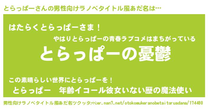 | 胡散臭い通販商品みたいなあだ名 | 『必ず成功する霊験あらたかなお札…その名も「とらっぱー」』 |