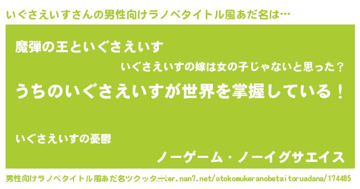 | 意味不明あだ名 | 『住所不定無職いぐさえいす(50歳)』 |