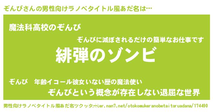 | 意味不明あだ名 | 『自称ぞんび』『永久保存ぞんび』 |
