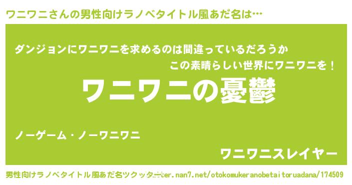 | 女子向けラノベタイトル風あだ名 | 『ワニワニ姫と円卓の騎士』 |