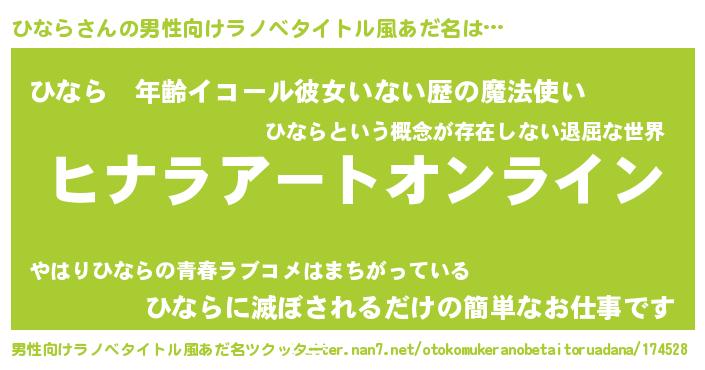| 胡散臭い通販商品みたいなあだ名 | 『億万長者になれる霊験あらたかなお札…その名も「ひなら」』 |