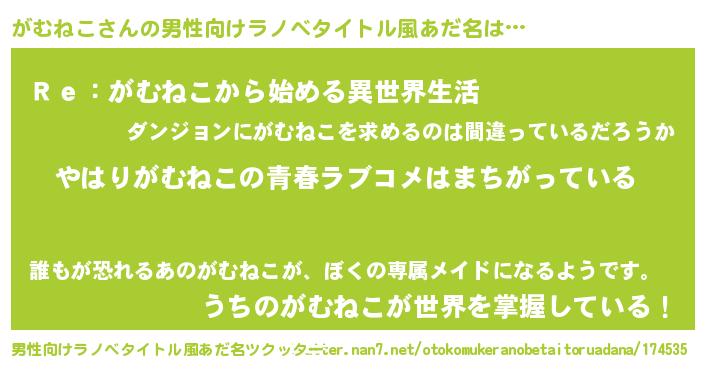 | 意味不明あだ名 | 『がむねこフォーエバー』『自称がむねこ』 |