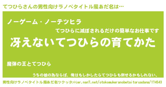 | 伝説のあだ名 | 『魔王と互角に渡り合う占い師てつひら』 |