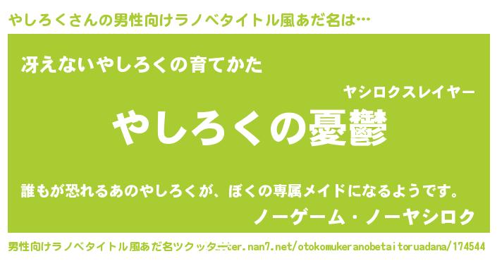 | 女子向けラノベタイトル風あだ名 | 『(仮)やしろくのやんごとなき事情』 |
