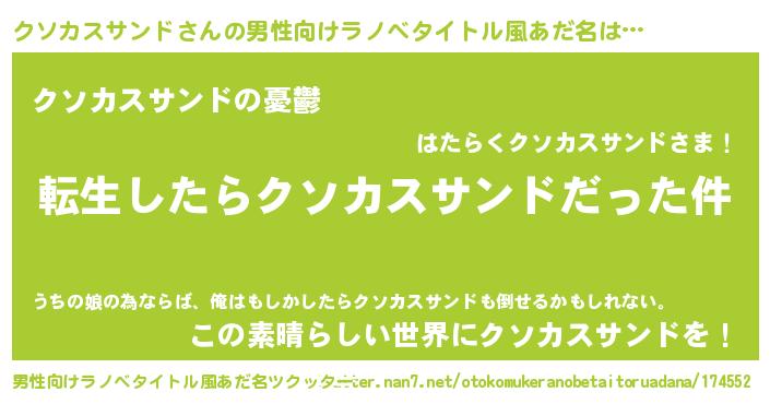 | 胡散臭い通販商品みたいなあだ名 | 『モテモテ間違いなしブレスレット…その名も「クソカスサンド」』 |