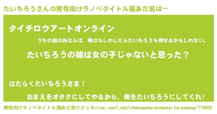 たいちろうさんの男性向けラノベタイトル風あだ名をツクッター!
