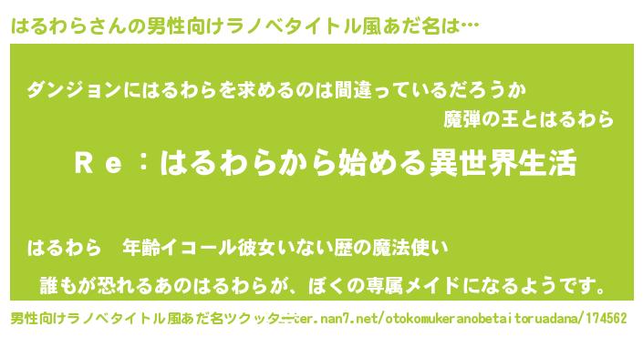 | 意味不明あだ名 | 『自称はるわら』『永久保存はるわら』 |