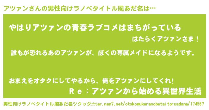 | 胡散臭い通販商品みたいなあだ名 | 『前代未聞の健康食品…その名も「アツァン」』 |