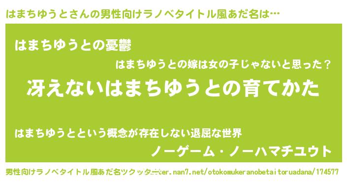 | 胡散臭い通販商品みたいなあだ名 | 『モテモテ間違いなし霊験あらたかなお札…その名も「はまちゆうと」』 |