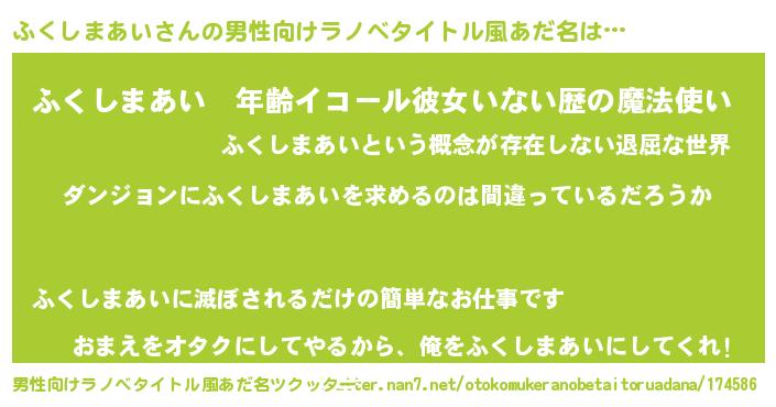 | 女子向けラノベタイトル風あだ名 | 『ふくしまあいは平凡を望む』 |