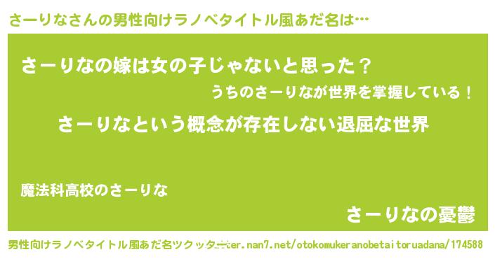 | ヘコむあだ名 | 『さーりな(小並感)』『さーを』 |