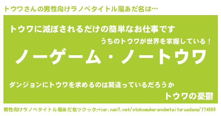 | ヒーロー風カッコイイあだ名 | 『慈愛の使者トウワ』『スーパートウワ』 |