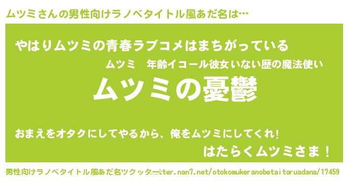 | 胡散臭い通販商品みたいなあだ名 | 『モテモテ間違いなし霊験あらたかなお札…その名も「ムツミ」』 |
