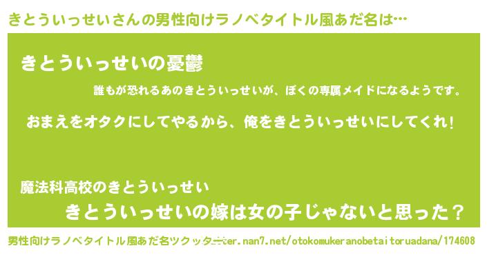 | 女子向けラノベタイトル風あだ名 | 『きとういっせい恋絵巻』 |