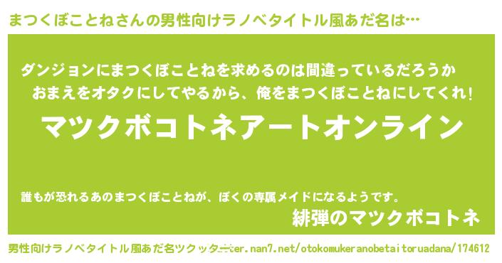 | 胡散臭い通販商品みたいなあだ名 | 『億万長者になれる水晶球…その名も「まつくぼことね」』 |