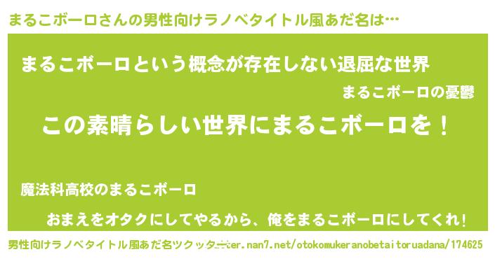 まるこボーロさんの男性向けラノベタイトル風あだ名をツクッター!
