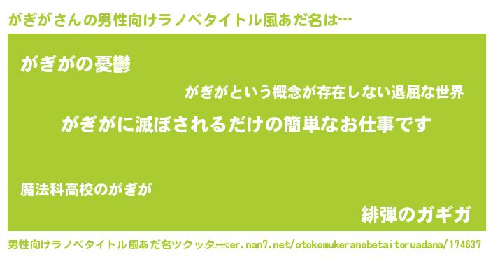 | ヘコむあだ名 | 『がぎもー』『がぎが(遠い目)』 |