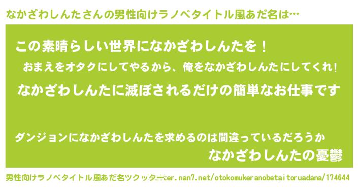 | 意味不明あだ名 | 『住所不定無職なかざわしんた(7歳)』 |