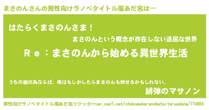 | 女子向けラノベタイトル風あだ名 | 『まさのんストレイドッグス』 |