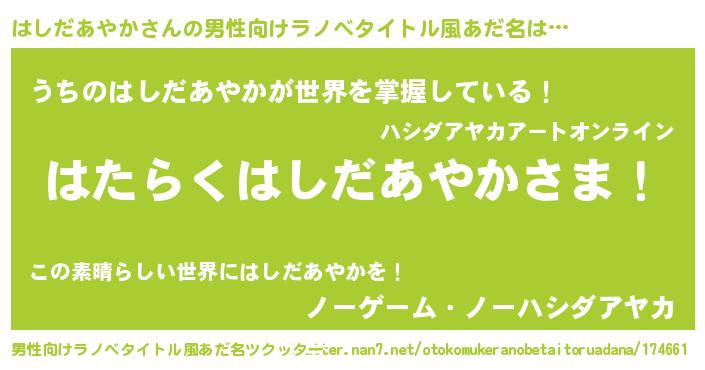 | ヒーロー風カッコイイあだ名 | 『愛の使者はしだあやか』『仮面ハシダー』 |