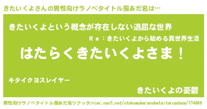| 胡散臭い通販商品みたいなあだ名 | 『来世でも幸せになれる招き猫…その名も「きたいくよ」』 |