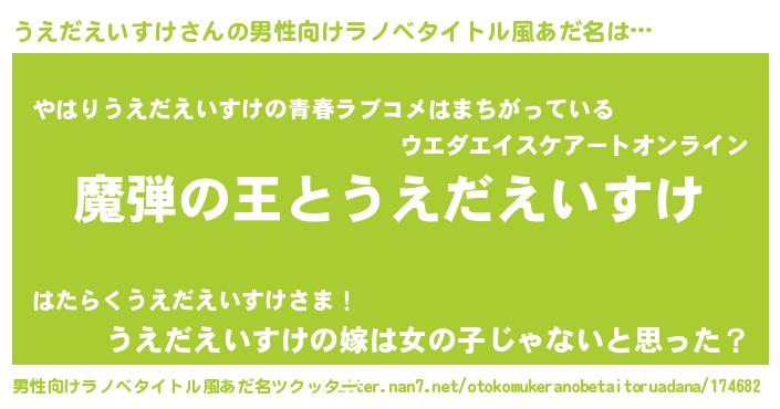 | 意味不明あだ名 | 『住所不定無職うえだえいすけ(86歳)』 |