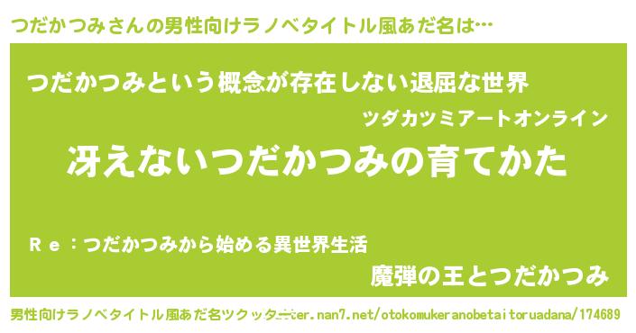 | 女子向けラノベタイトル風あだ名 | 『シンデレラつだかつみ家の靴箱館』 |