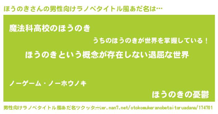| 意味不明あだ名 | 『永久保存ほうのき』『自称ほうのき』 |