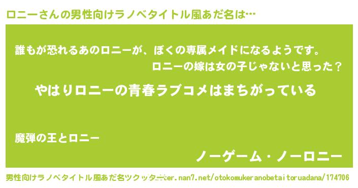 | ファンタジー風あだ名 | 『エターナルロニーー』『ロニディッシュ』 |