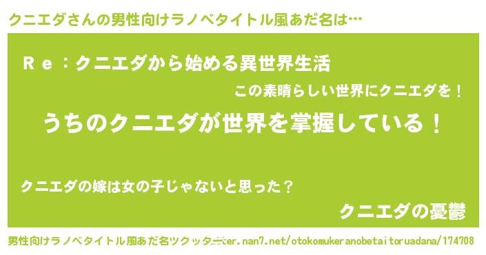 | 女子向けラノベタイトル風あだ名 | 『男装クニエダの憂鬱な任務』 |