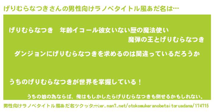 | 女子向けラノベタイトル風あだ名 | 『げりむらなつきは平凡を望む』 |