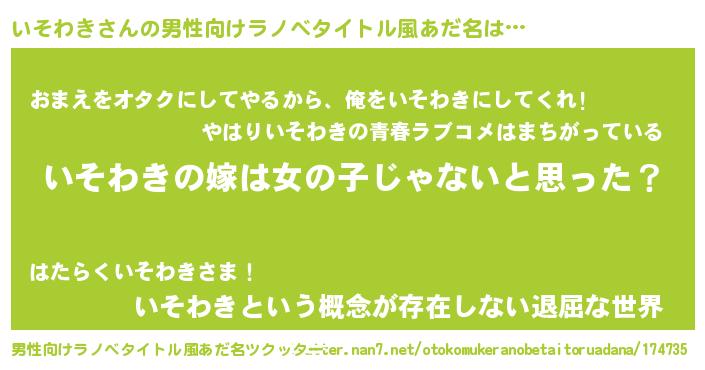 | 胡散臭い通販商品みたいなあだ名 | 『全米が絶賛したサプリメント…その名も「いそわき」』 |