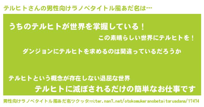 | 女子向けラノベタイトル風あだ名 | 『テルヒトは平凡を望む』 |