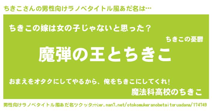 | 意味不明あだ名 | 『住所不定無職ちきこ(2歳)』『自称ちきこ』 |