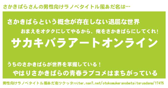 | 胡散臭い通販商品みたいなあだ名 | 『億万長者になれる水晶球…その名も「さかきばら」』 |