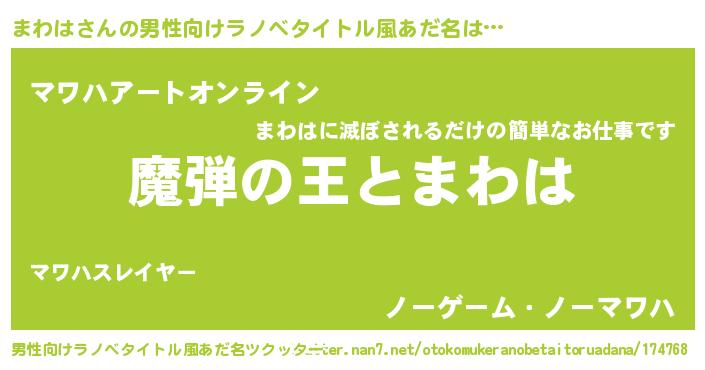 | 女子向けラノベタイトル風あだ名 | 『まわはが死なない童話 林檎のまわはの診療簿』 |