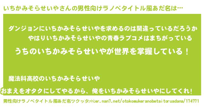 | 意味不明あだ名 | 『とにかく怪しいいちかみそらせいや』 |