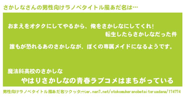 | ヘコむあだ名 | 『さかしな(笑)』『牛乳』 |