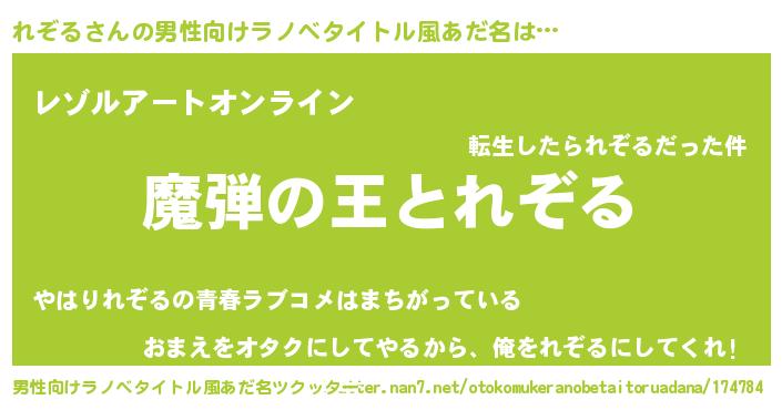 | 女子向けラノベタイトル風あだ名 | 『れぞるが死なない童話 林檎のれぞるの診療簿』 |