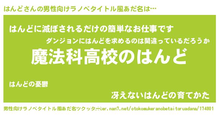 | 女子向けラノベタイトル風あだ名 | 『はんどなんてお断りですっ。』 |
