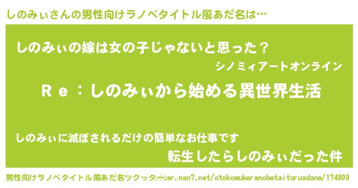 | 女子向けラノベタイトル風あだ名 | 『しのみぃストレイドッグス』 |
