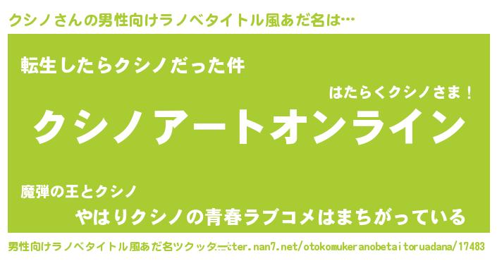 | 胡散臭い通販商品みたいなあだ名 | 『モテモテ間違いなし霊験あらたかなお札…その名も「クシノ」』 |